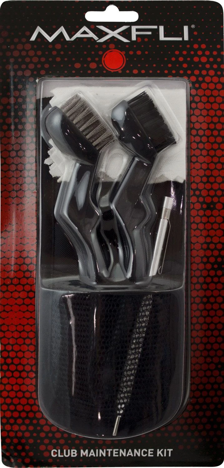 Keep you clubs in pristine condition after every round with the Maxfli® Club Maintenance Kit. Equipped with a metal club cleaner, sponges, polishing cloth and polish applications, your clubs will be the talk of the course. The wire brush included in the kit is ideal for irons and the nylon brush is ideal for woods. Make sure your gear is course-ready by using the Maxfli® Club Maintenance Kit.