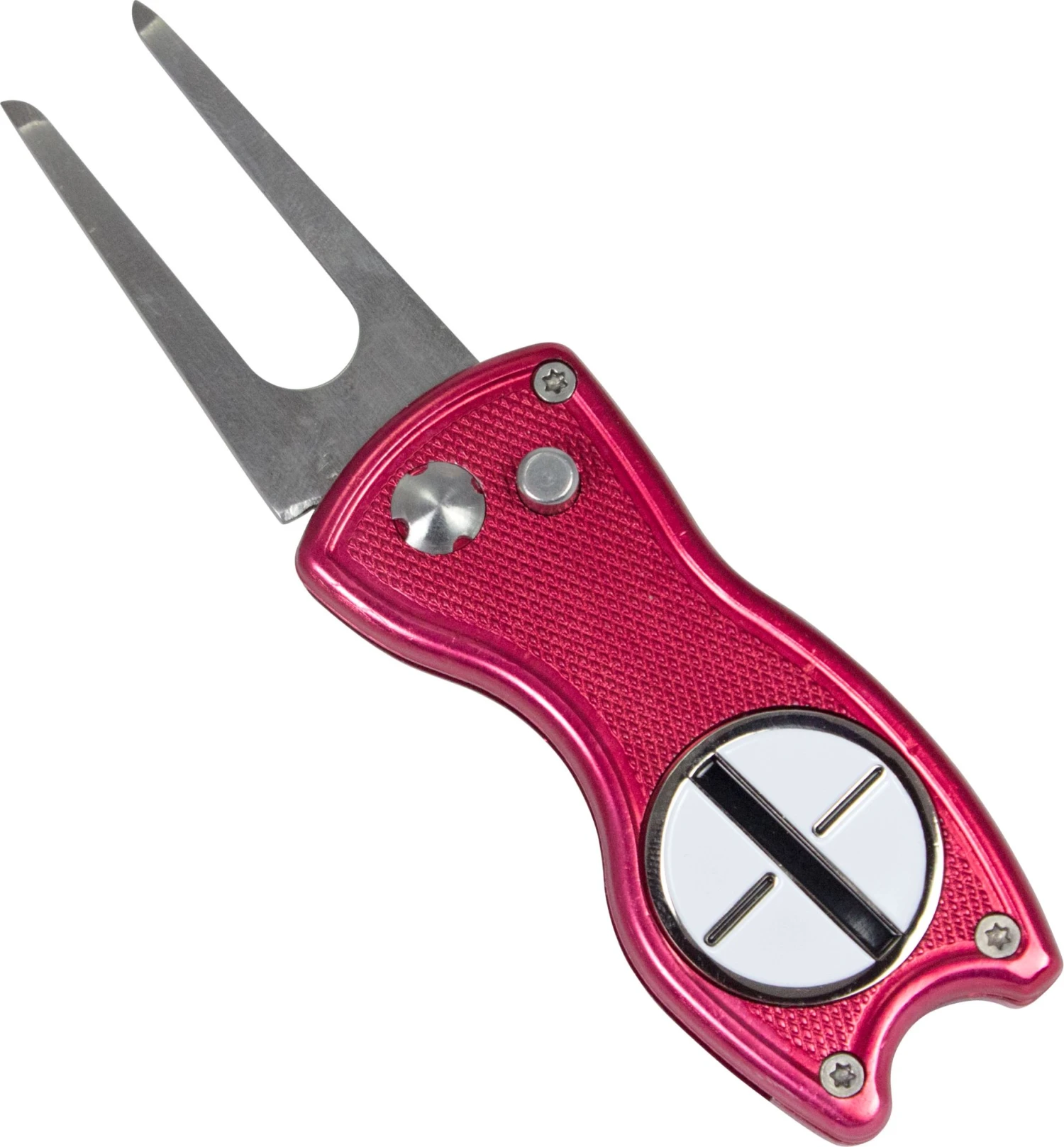 Compact and portable – mark your golf ball and fix ball marks in style with the Maxfli Retractable Divot Tool. The retractable design saves space and eliminates the risk of accidentally putting a hole in your pocket. Includes a black and white alignment ball marker so you can aim your putt right at the hole.