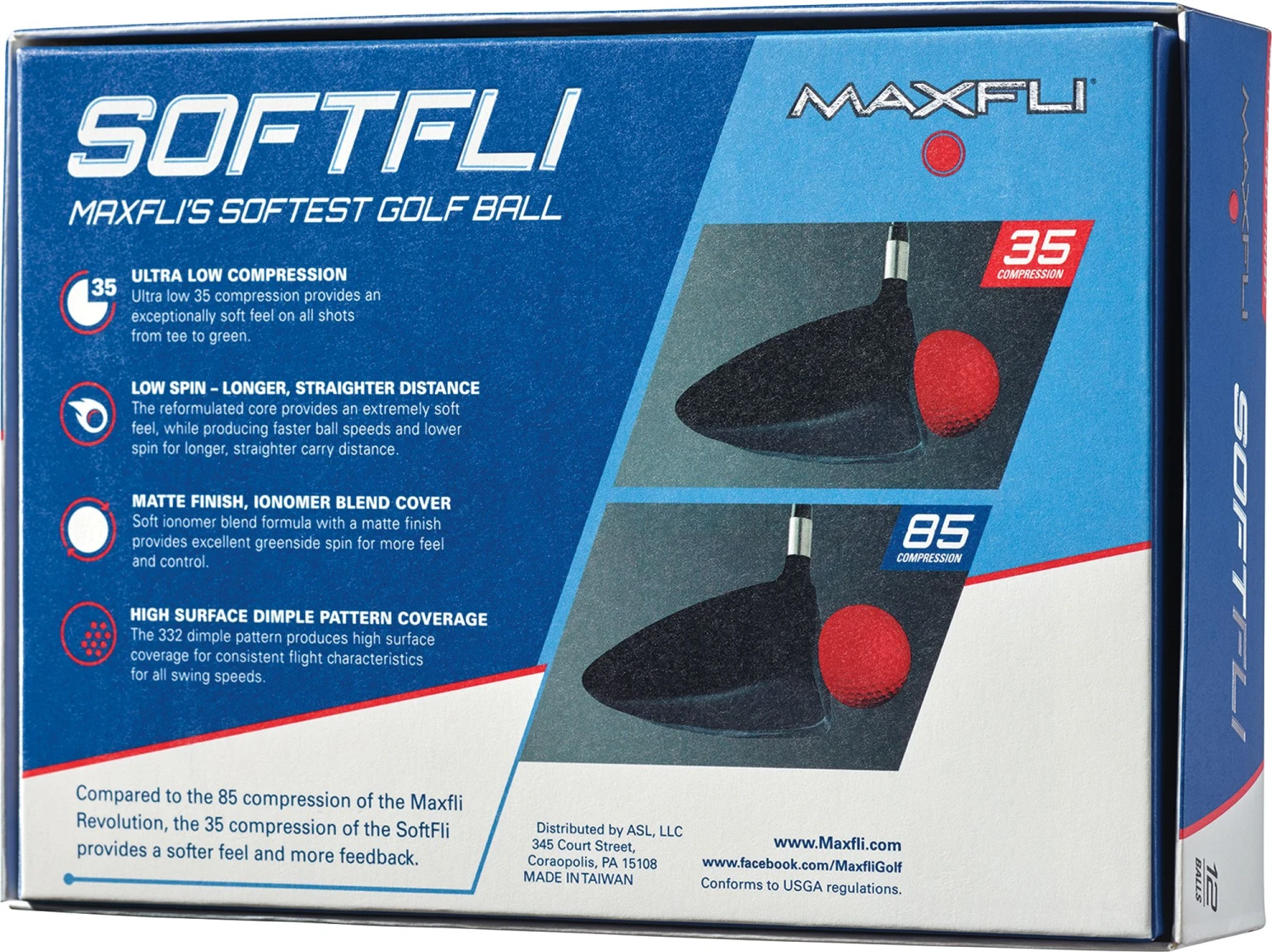 Blend unparalleled feel and performance while playing Maxfli SoftFli Matte Golf Balls. Maxfli’s softest golf ball delivers feel and feedback on shots from tee to green. The reformulated core maintains faster ball speeds and lower spin for accuracy. Consistent flight characteristics are achieved through a high surface coverage 332 dimple pattern. A soft Ionomer cover formulation with vivid matte coloration unlocks greater control and visibility.